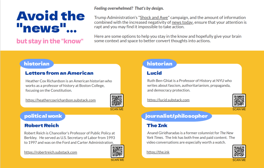 Trump Administration’s “Shock and Awe” campaign, and the amount of information combined with the increased negativity of news today, ensure that your attention is rapt, and you may find it impossible to take action.